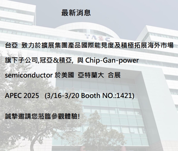 The TASC Semiconductor Co., Ltd. Group is committed to enhancing the global visibility of its products and expanding its overseas markets. Its subsidiaries Guanya Semiconductor and Jia Semiconductor will co-exhibit with Chip-Gan-power Semiconductor at APEC 2025 in Atlanta, USA (March 16–20, Booth No. 1421). All are welcome to visit and exchange insights.…